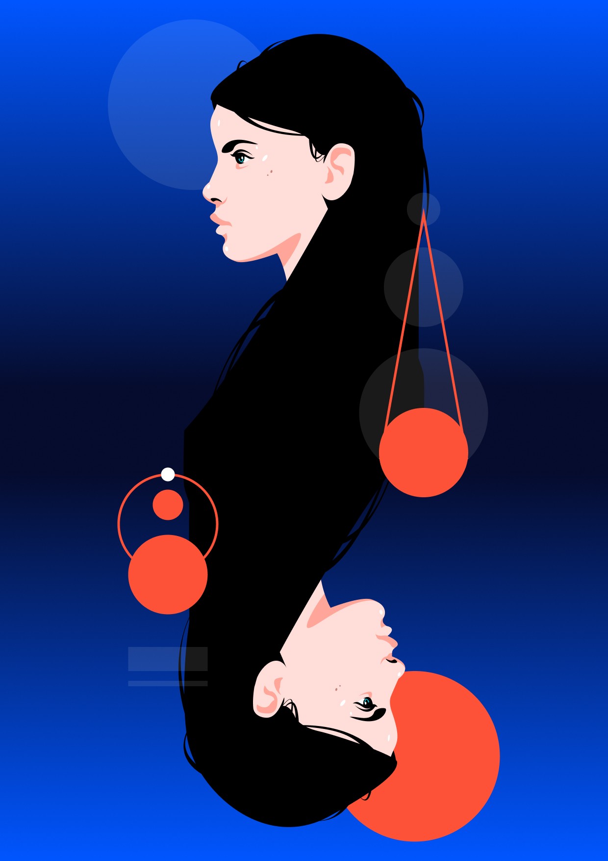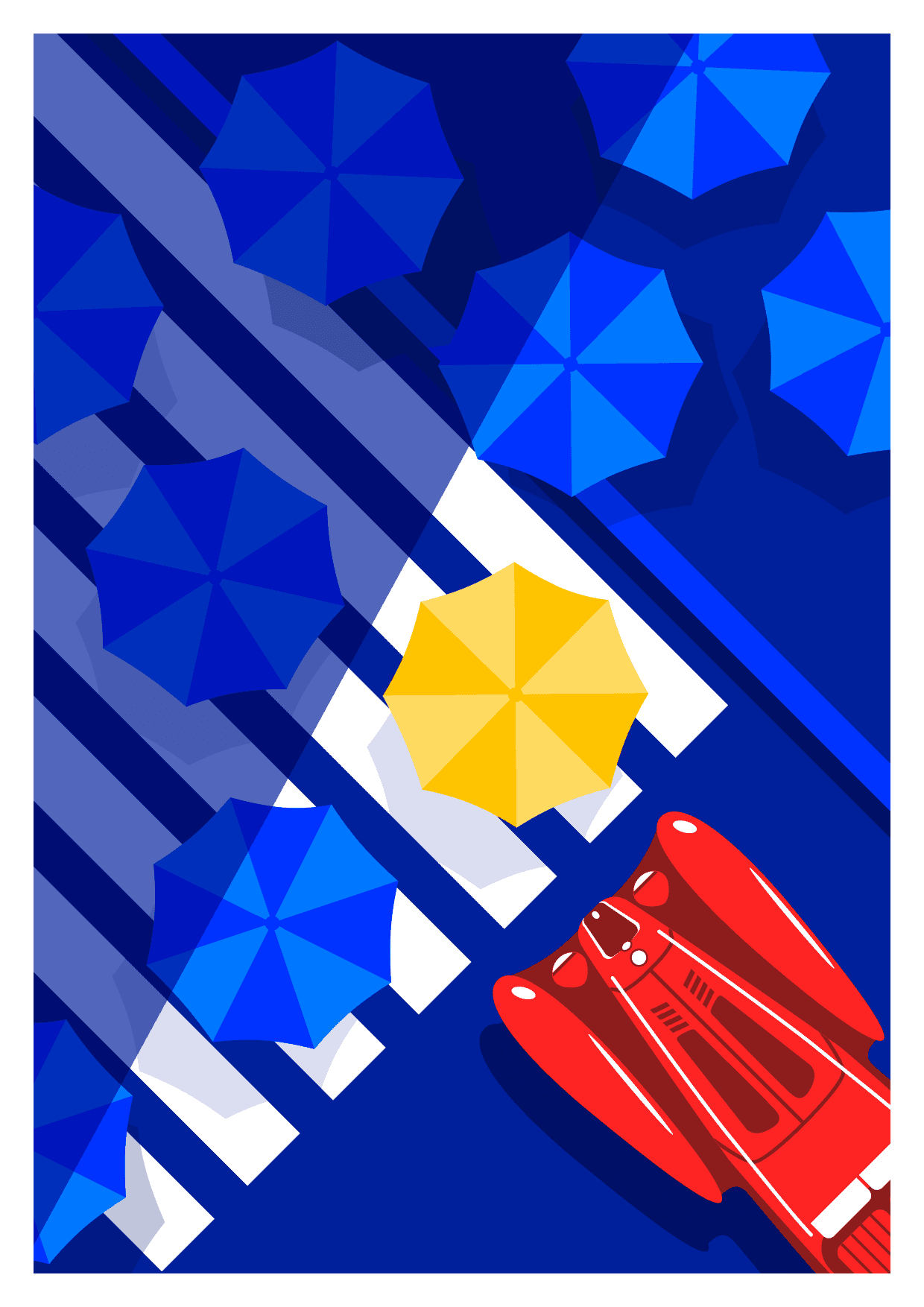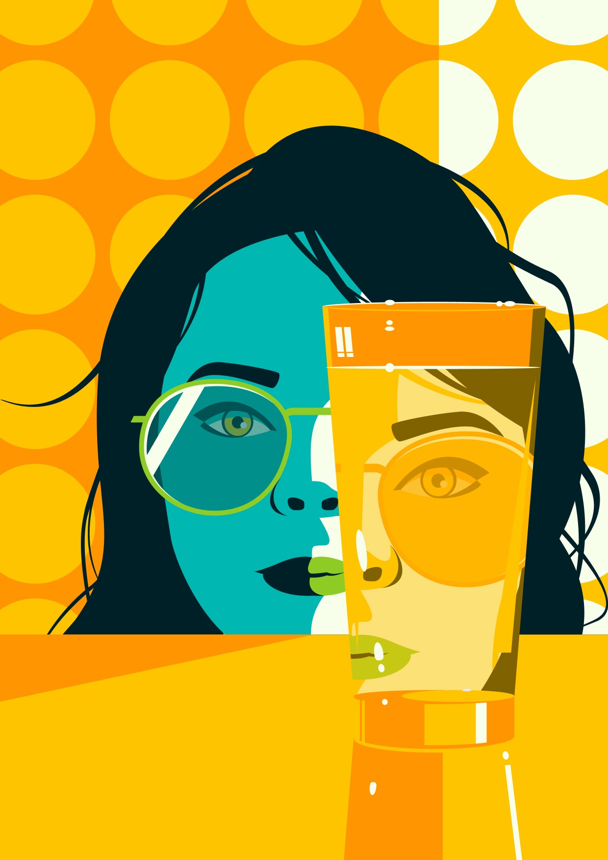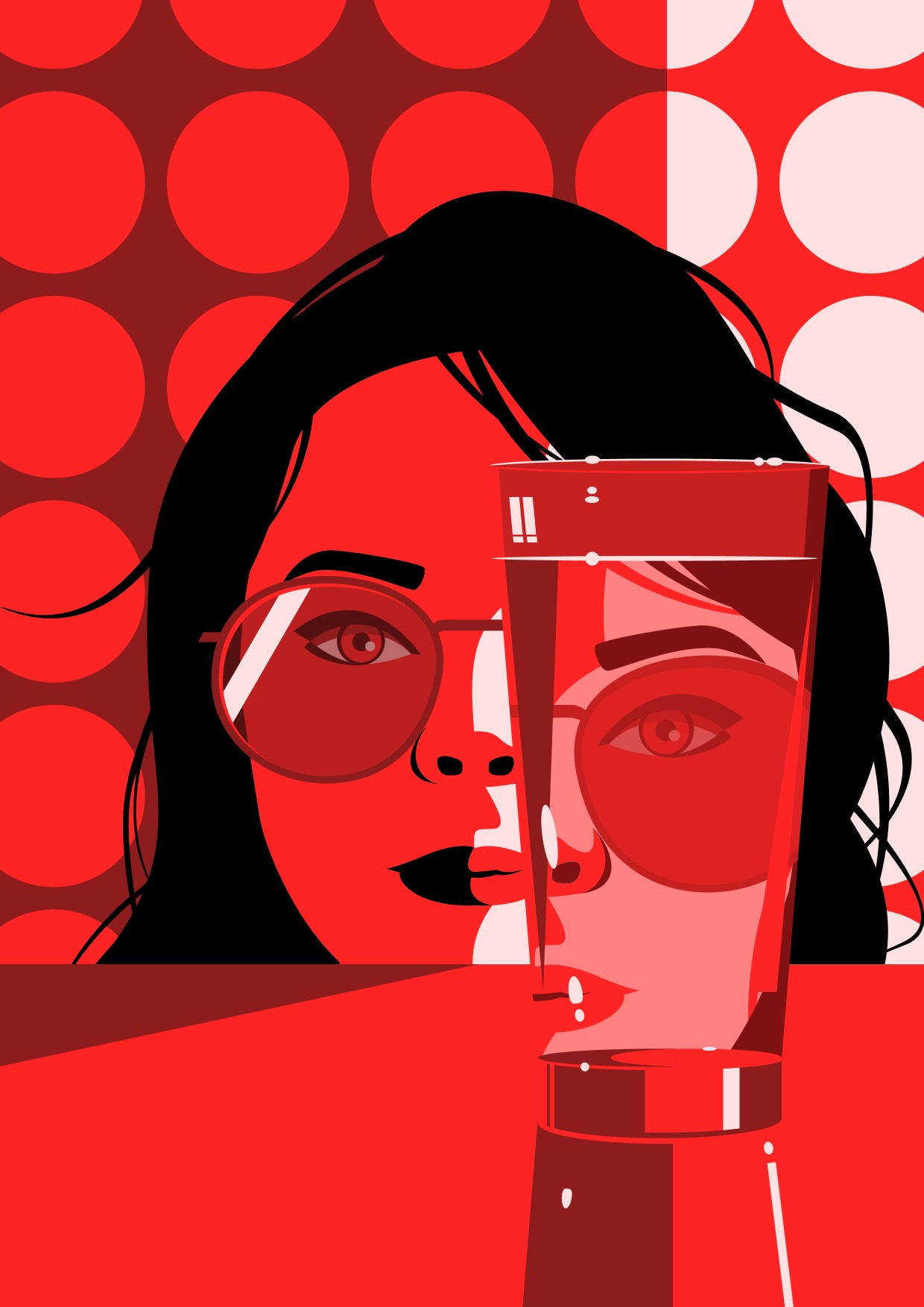 Je réalise des illustrations vectorielles. J’aime particulièrement jouer avec les effets de lumière et d’illusion, que ce soit à travers la réflexion du verre ou de l’eau.