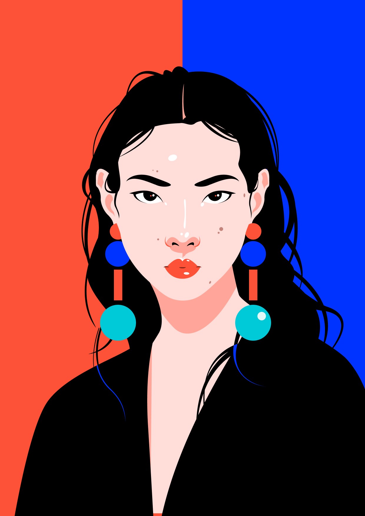 À l’occasion d’une exposition, j’ai conçu et réalisé des illustrations sous Figma, mêlant portraits et animaux à partir de formes vectorielles.